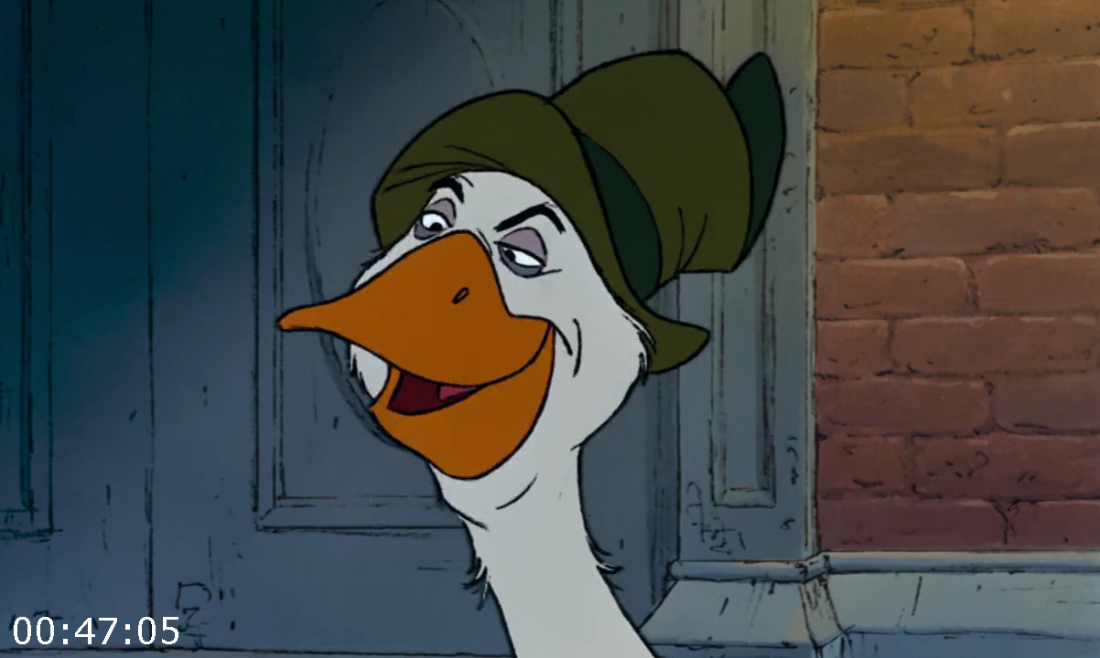 Description: When Madame Adelaide Bonfamille leaves her fortune to Duchess and her children-Bonfamille’s beloved family of cats-the butler plots to steal the money and kidnaps the legatees, leaving them out on a country road. All seems lost until the wily Thomas O’Malley Cat and his jazz-playing alley cats come to the aristocats’ rescue.