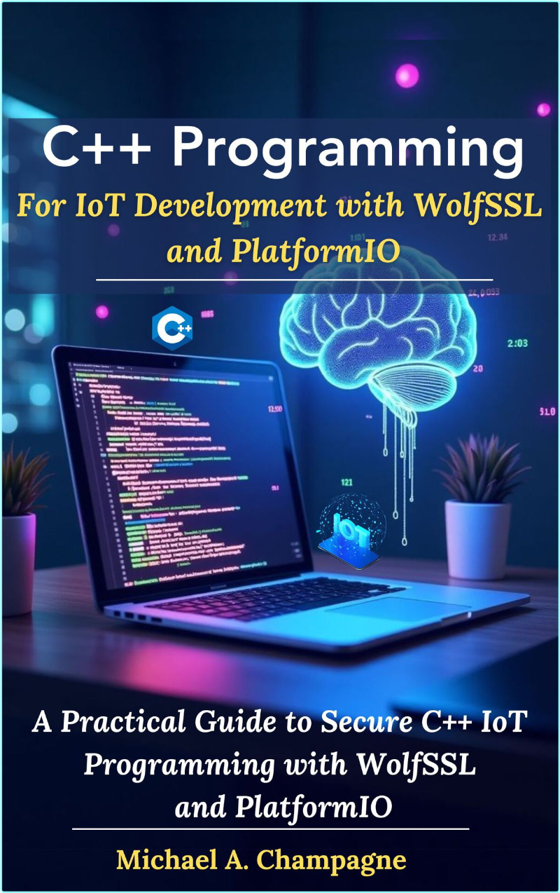 This book introduces the foundations of IoT systems, explains why C++ is ideal for embedded development, and shows how to set up projects with PlatformIO. It provides hands-on guidance for programming popular IoT boards like ESP32, STM32, Arduino, and Raspberry Pi Pico, while covering essential topics such as networking protocols (TCP/IP, MQTT, CoAP), secure communication with WolfSSL, and cryptography with WolfCrypt.