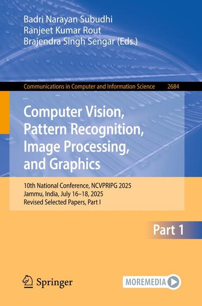 This two-set volume CCIS 2684 and CCIS 2685 constitutes the refereed proceedings of the 10th National Conference on Computer Vision, Pattern Recognition, Image Processing and Graphics, NCVPRIPG 2025 held in Jammu, India, during July 16-18, 2025.The 70 full papers presented in these volumes were carefully reviewed and selected from 266 submissions. The papers cover topics in Active and Real Time Vision, Industrial Vision Systems, Motion and Video Analysis, Hardware for Graphics, Image and Video Compression, Hardware for Vision and IP, Image and Video Retrieval, Visual Special Effects, Object Detection and Recognition, Speech and Audio Processing, Segmentation and Grouping, Document Understanding, Digital Heritage, Medical Image Analysis, Aerial and Satellite Image Analysis, Pattern Recognition, Sensors and Imaging models, Deep Learning