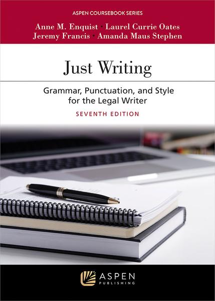 Just Writing: Grammar, Punctuation, and Style for the Legal Writer, Seventh Edition, features the authors’ famously effective step-by-step approach to writing and editing legal documents effectively. With numerous examples, including briefs and memos, Just Writing walks students through the process of drafting and revising legal writing to make the argument and language as correct and clear as possible. This text also discusses the expectations of legal writing and argument in American and other cultures, as well as a chapter devoted to helping ESL students develop their writing skills.