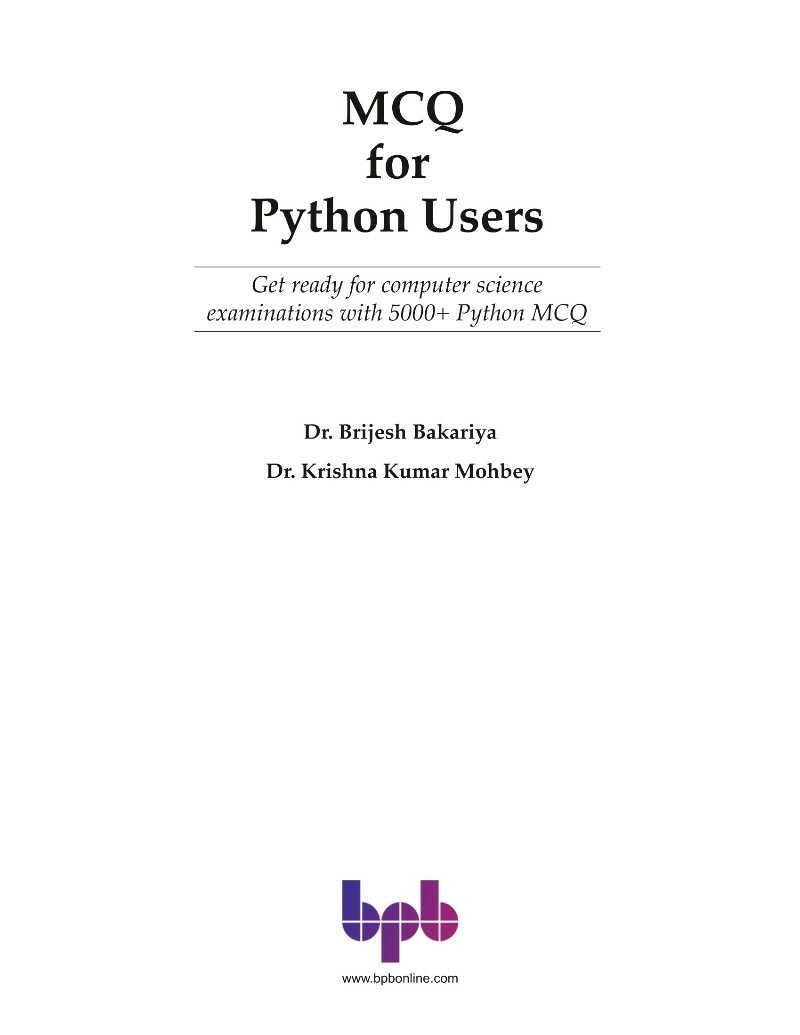 📌 MCQ For Python Users Nodrm.pdf (BAKARIYA, DR. BRIJES) (2024) (105.66 MB)