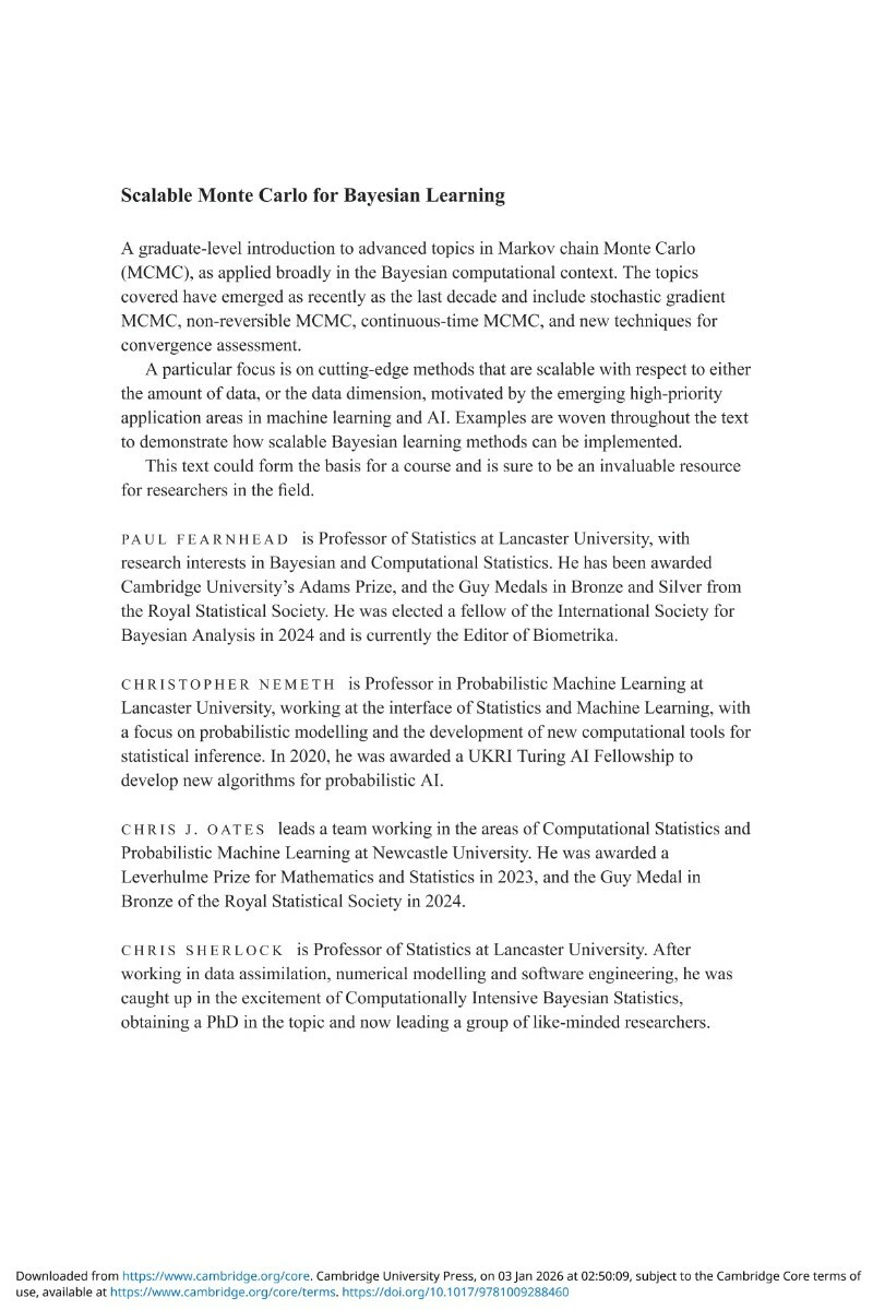 📌 ScalableMonteCarloforBayesianLearning.pdf (Fearnhead, Paul, Nemeth, Christopher, Oates, Chris J., Sherlock, Chris) (2025) (9.38 MB)