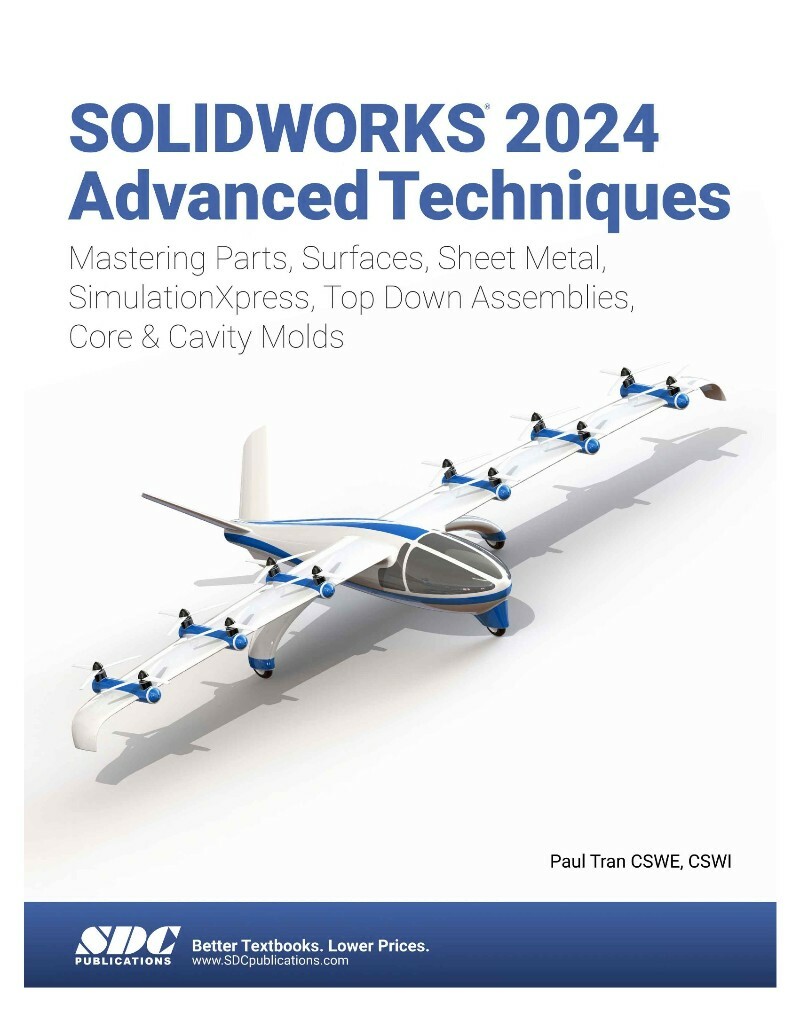 SOLIDWORKS 2024 Advanced Techniques picks up where SOLIDWORKS 2024 Intermediate Skills leaves off. Its aim is to take you from an intermediate user with a basic understanding of SOLIDWORKS and modeling techniques to an advanced user capable of creating complex models and able to use the advanced tools provided by SOLIDWORKS. The text covers parts, surfaces, SimulationXpress, sheet metal, top-down assemblies and core and cavity molds.