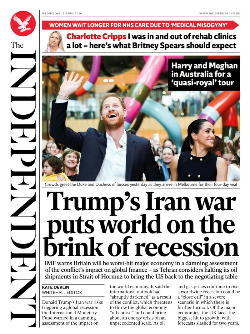 The Independent 15 April 2026 (Daniel Parker)