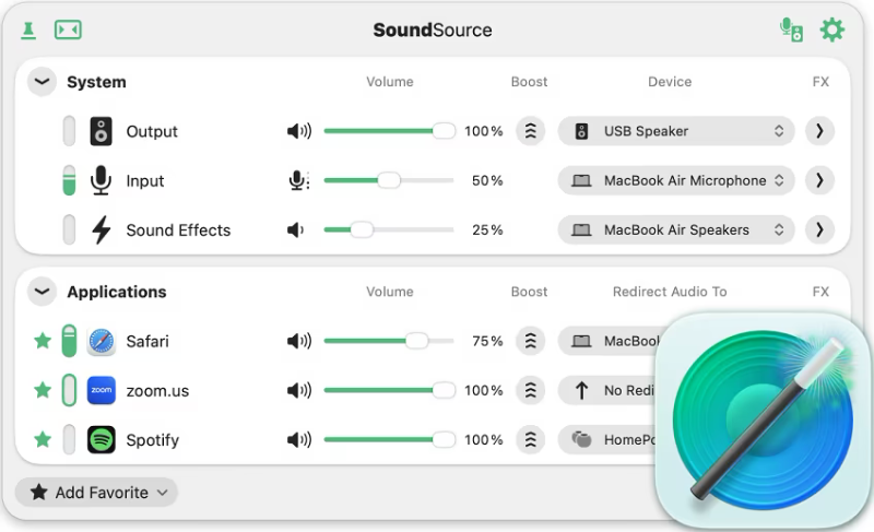📝 DESCRIPTION: SoundSource gives you superior sound control on your Mac. Use it to control individual app settings, like volume and output device. Apply an equalizer and other audio effects to any audio. You also have fast access to your Mac’s audio device settings and levels, from anywhere. SoundSource gives you truly powerful audio control, all from a globally available menu bar app.