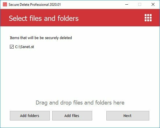 Moreover, you can choose the needed files or folders by clicking the "Add files" link. Or, the third way, you can click any file or folder in Windows Explorer, and in the popup menu, choose "Send to" and choose "Secure Deleter." That’s easy!