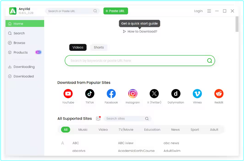 AnyVid has the ability to identify and download videos from over 1,000 websites, including various popular streaming sites like TikTok, Facebook, Instagram,Twitch, Vimeo. You can download video from any website by searching their URL in no time.
