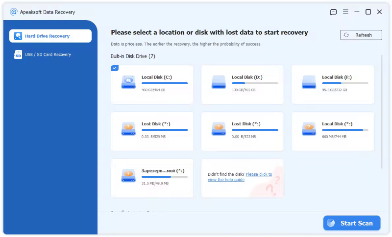 Whether you mistakenly deleted some important files, or lost data due to hard drive formatted or a system crash, data loss will no longer be your biggest nightmare. Apeaksoft Data Recovery offers professional solutions to handle various data loss issues. It can help you recover all types of data from computer, recycle bin, hard/flash drive, memory card, etc. with ease.
