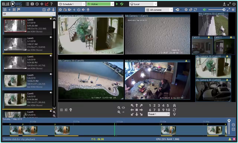 Blue Iris Professional Surveillance Software allows you to view and record up to 64 cameras (IP cameras, web cameras, DVR/CCTV based cameras) simultaneously and is compatible with the vast majority of IP camera and DVR brands. In addition. it takes advantage of H.264 video compression allowing you to save hard drive space and reduce bandwidth consumption. Use Amcrest Blue Iris to turn your existing Windows PC into a fully featured professional video surveillance system.