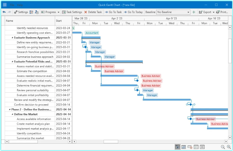 Quick Gantt Chart is a simple yet powerful Gantt chart software for Windows 10 & 11. With this Gantt chart tool, you can quickly create professional and detailed project timelines that take your project management skills to the next level.