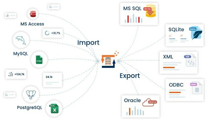 ✔MS SQL: The server imports, exports, and updates data directly in MS SQL Server databases/tables. All versions of SQL Server 7.0 through SQL Server 2019 are supported.