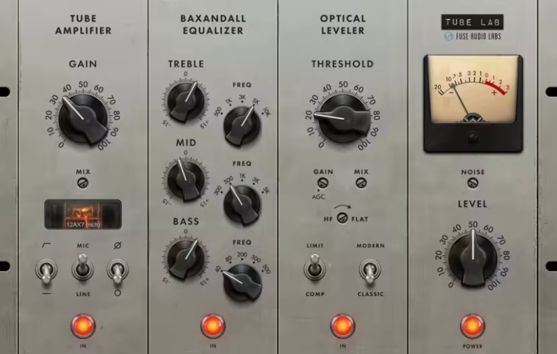 📝 DESCRIPTION: Tube Lab is a vintage channel strip built to be driven for character – warm, thick, gritty, and beautifully alive under gain. It combines a multi-tube preamp, a Baxandall-style EQ, and an optical leveler into an intuitive workflow with flexible module routing. Rather than locking you into a fixed path, Tube Lab lets you configure tube flavors and module order to shape your custom tone.