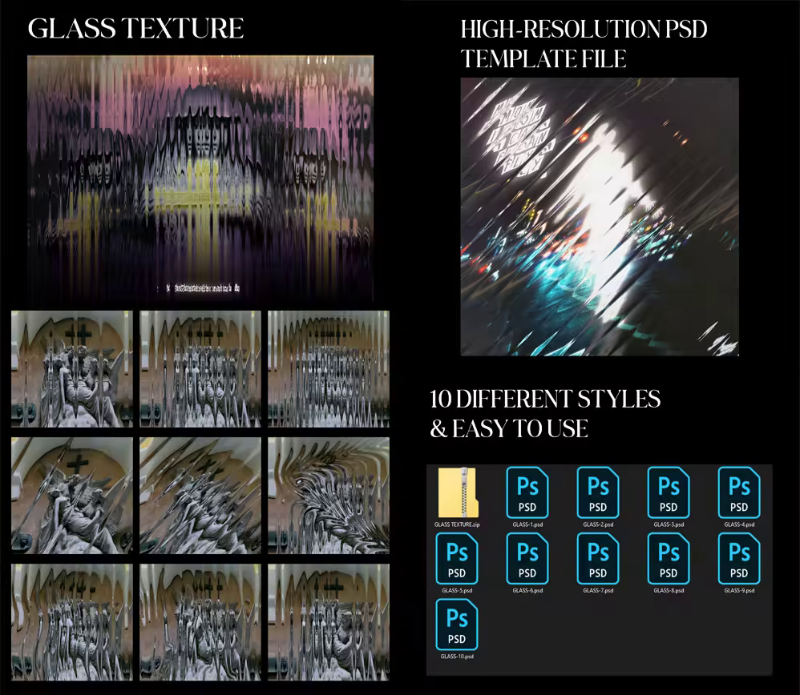 ⭐️ Glass Textures 10 Glass Styles For Photoshop – (11 MB)