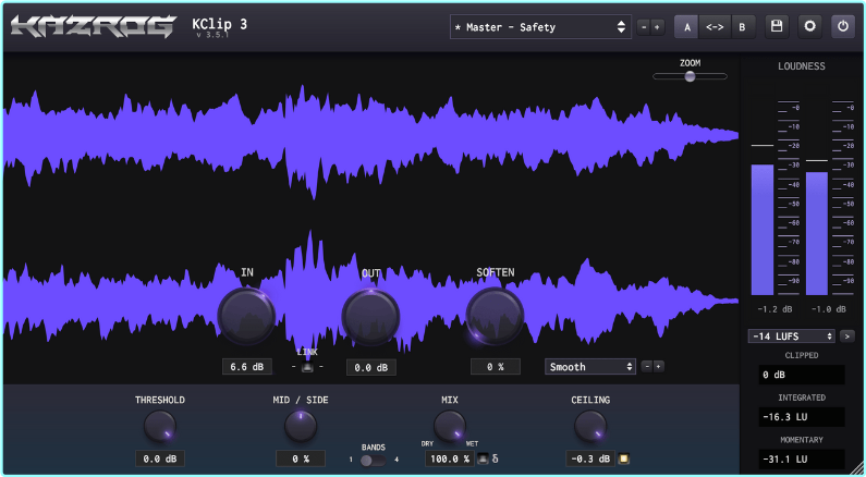 – Mid/Side processing – Clip your mid and side signals separately for extra stereo imaging control.