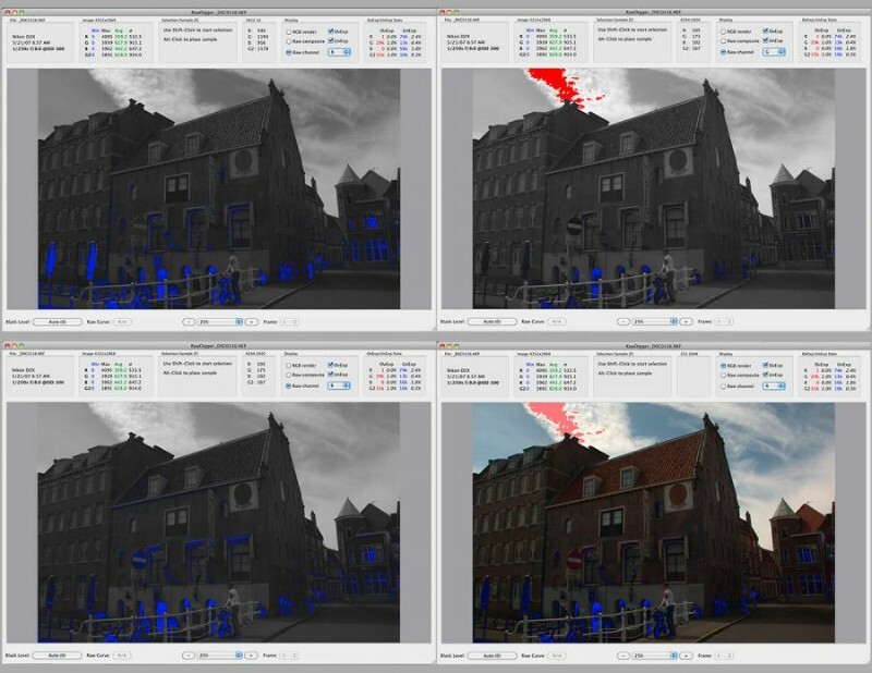 ✔RawDigger helps redetermine the raw level at which the overexposure “bli"kies” st" rt on the camera LCD and to know how much headroom is still available after the blinkies start showing.