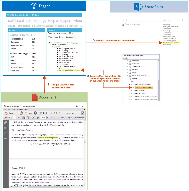 Nutrient Document Searchability Tagging is a tool that further enhances findability and classification of documents in SharePoint by automatically generating and tagging metadata based on the contents of the documents via rules, taxonomies, barcodes, PDF forms, XMP and integration with NLP services.