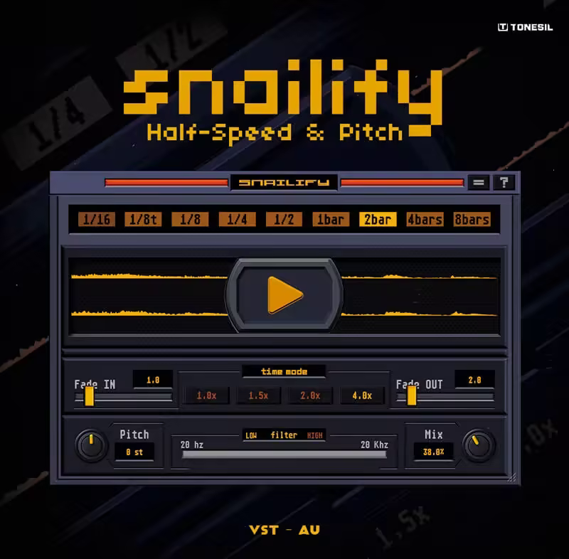 Snailify is a dedicated half-time and time-stretch effect designed to slow your music down without killing its soul. From dark trap grooves to spaced-out melodies, Snailify lets you bend time, reshape rhythm, and uncover entirely new moods hiding inside your audio.