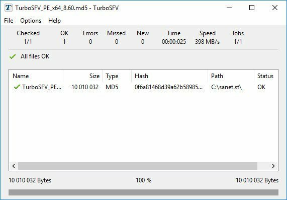 📝 DESCRIPTION: TurboSFV is a utility for the calculation and validation of checksums for files.