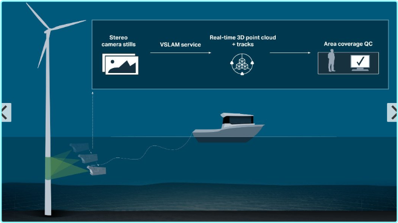 Voyis VSLAM Powered by EIVA NaviSuite is a computer vision software product which generates real-time QC displays of area coverage such as 3D point cloud and trajectory plot – using only your Discovery Stereo camera for input. The result is improved survey quality assurance during acquisition, as well as enhanced ROV visual inspection results by linking high-quality stills with true-scale 3D point clouds in real time.