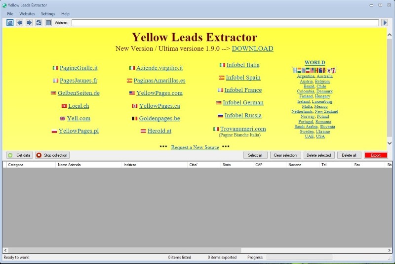 In addition to the Yellow Pages directory, the program lets you capture company data worldwide thanks to the Infobel directory.